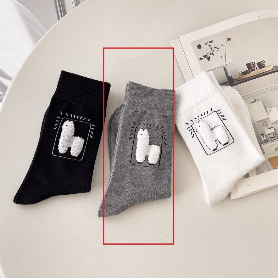 Spring And Autumn Tube Socks Cute Cartoon Black White Gray Alpaca Socks