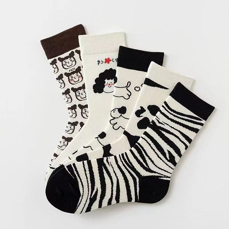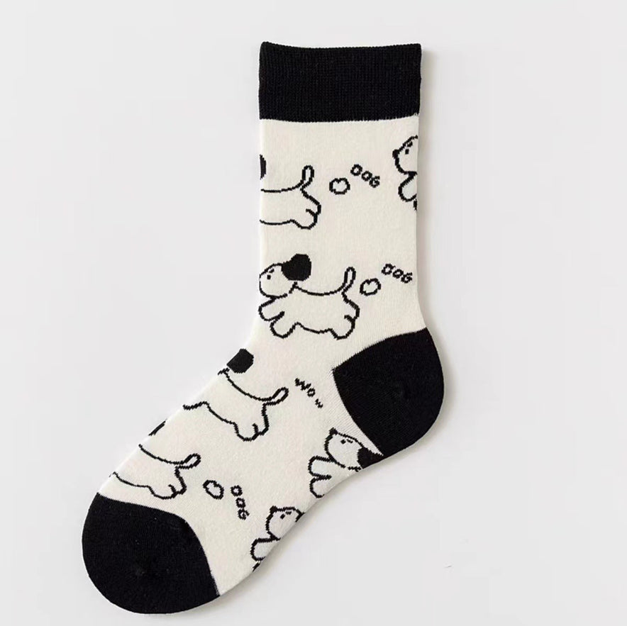Women's Black And White Cartoon Mid-calf Length Loose Socks